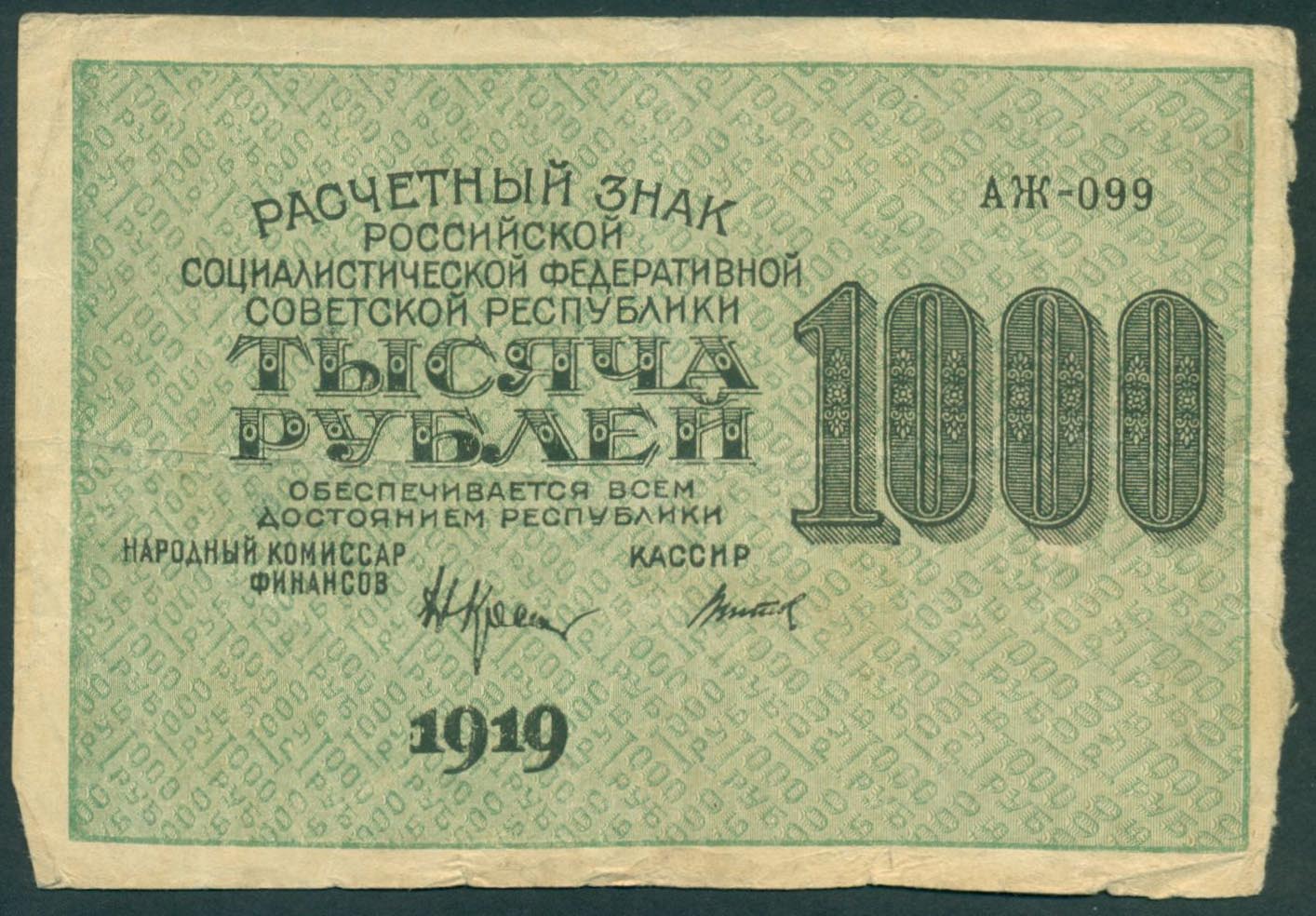 Эмиссионный центр - Народный банк РСФСР.