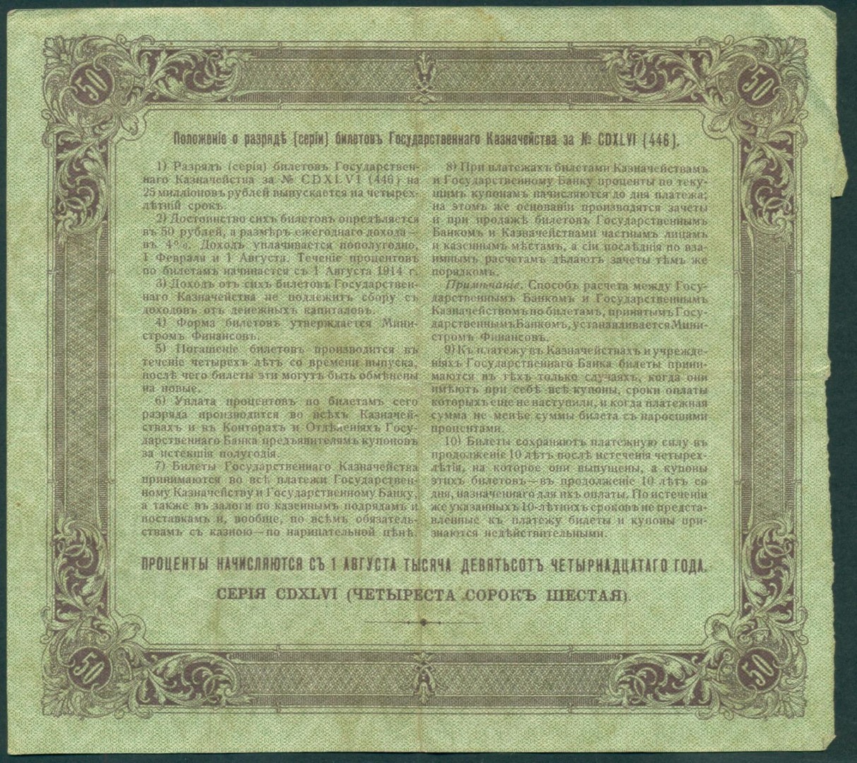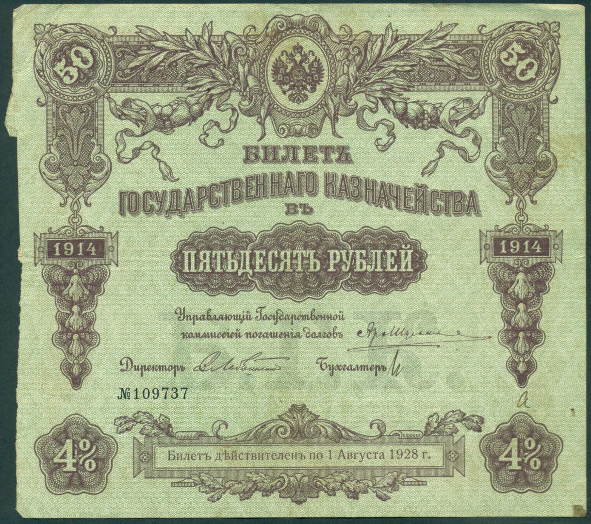 Российская Империя, 50 рублей 1914 год Билет Государственного Казначейства.
