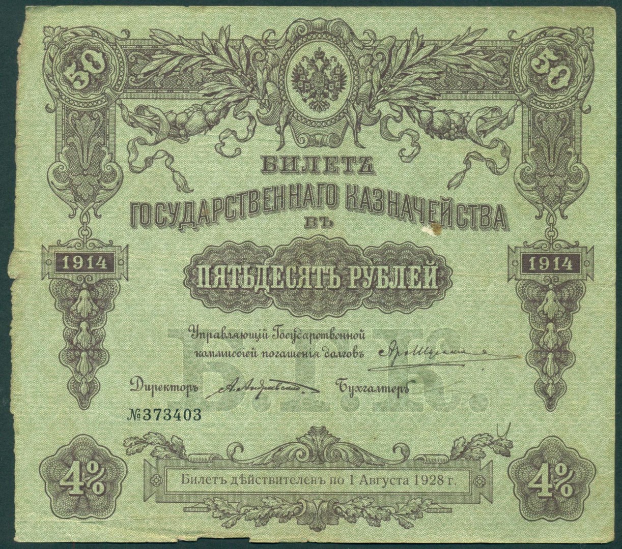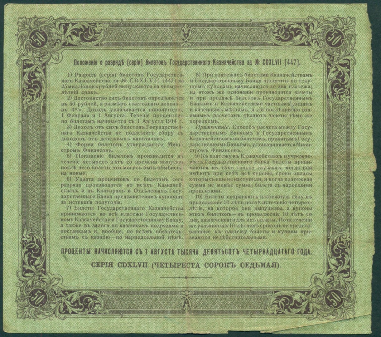 Российская Империя, 50 рублей 1914 год Билет Государственного Казначейства.