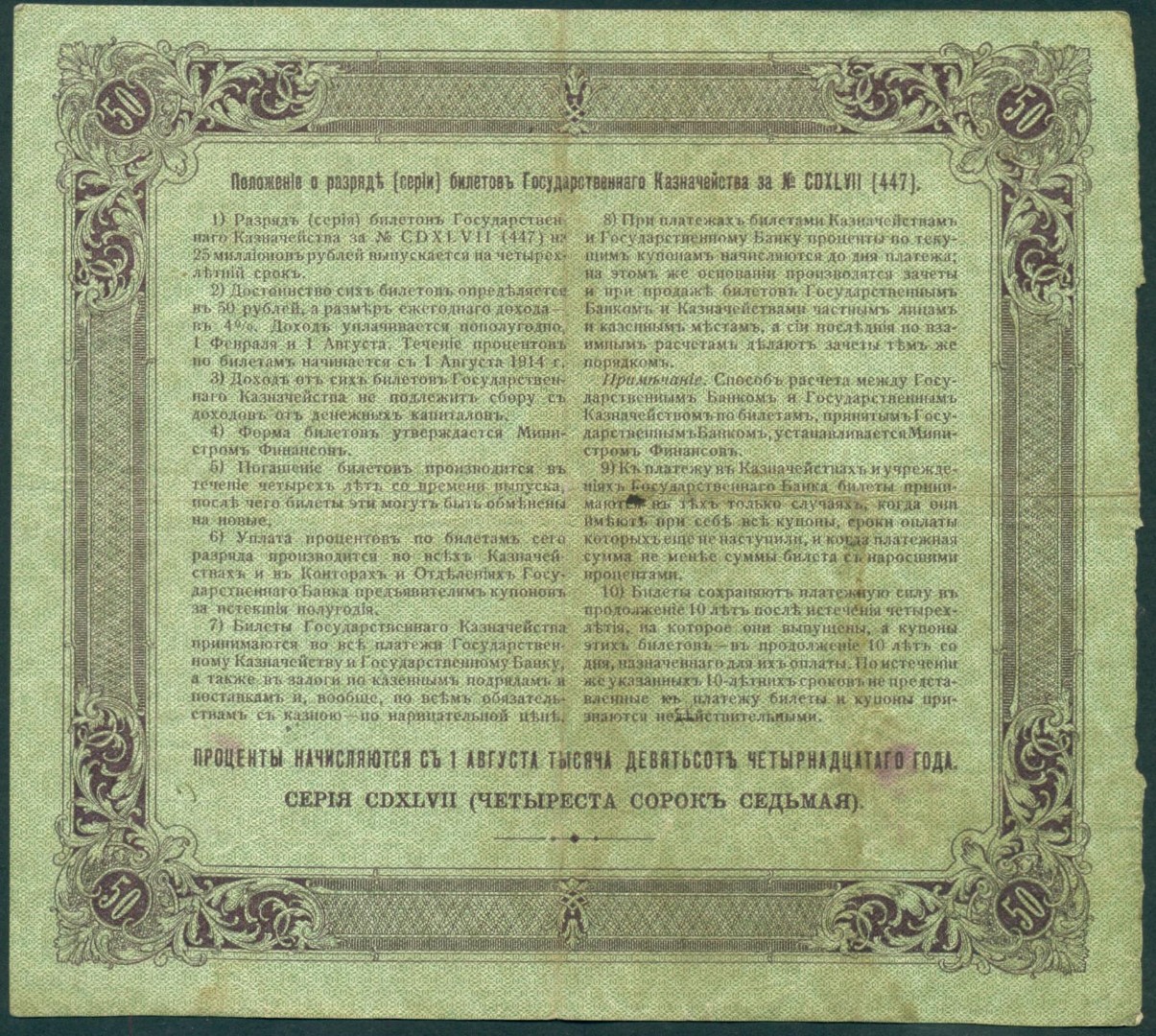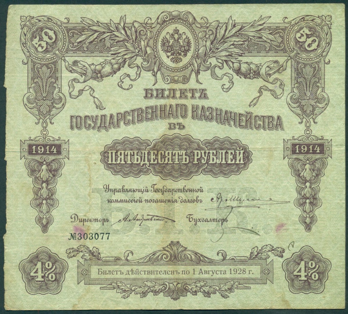 Российская Империя, 50 рублей 1914 год Билет Государственного Казначейства.