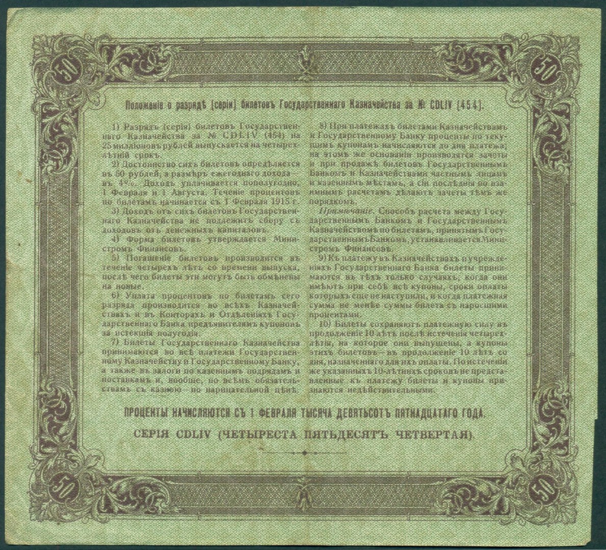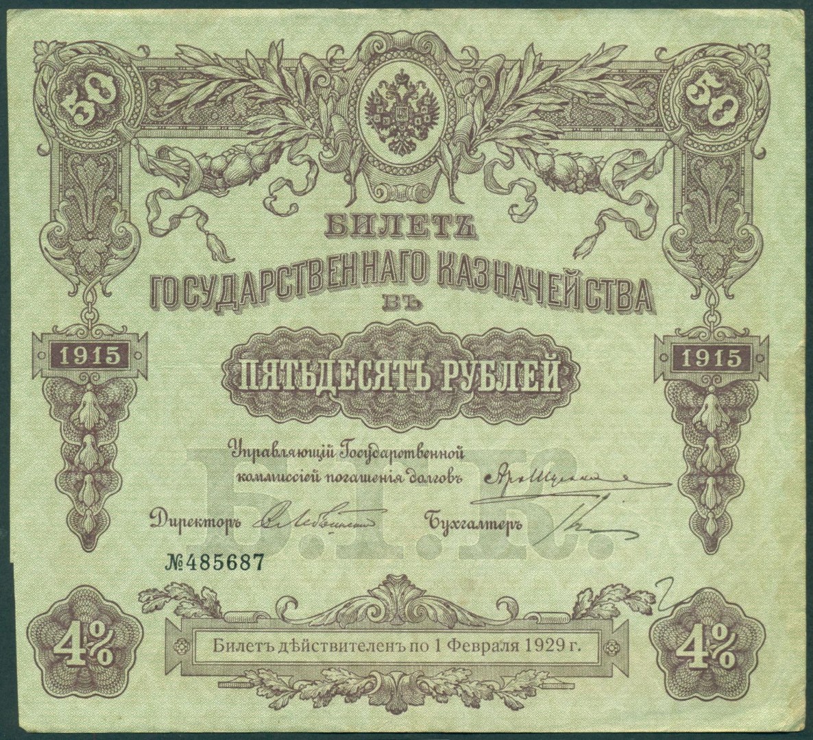 Российская Империя, 50 рублей 1915 год Билет Государственного Казначейства.