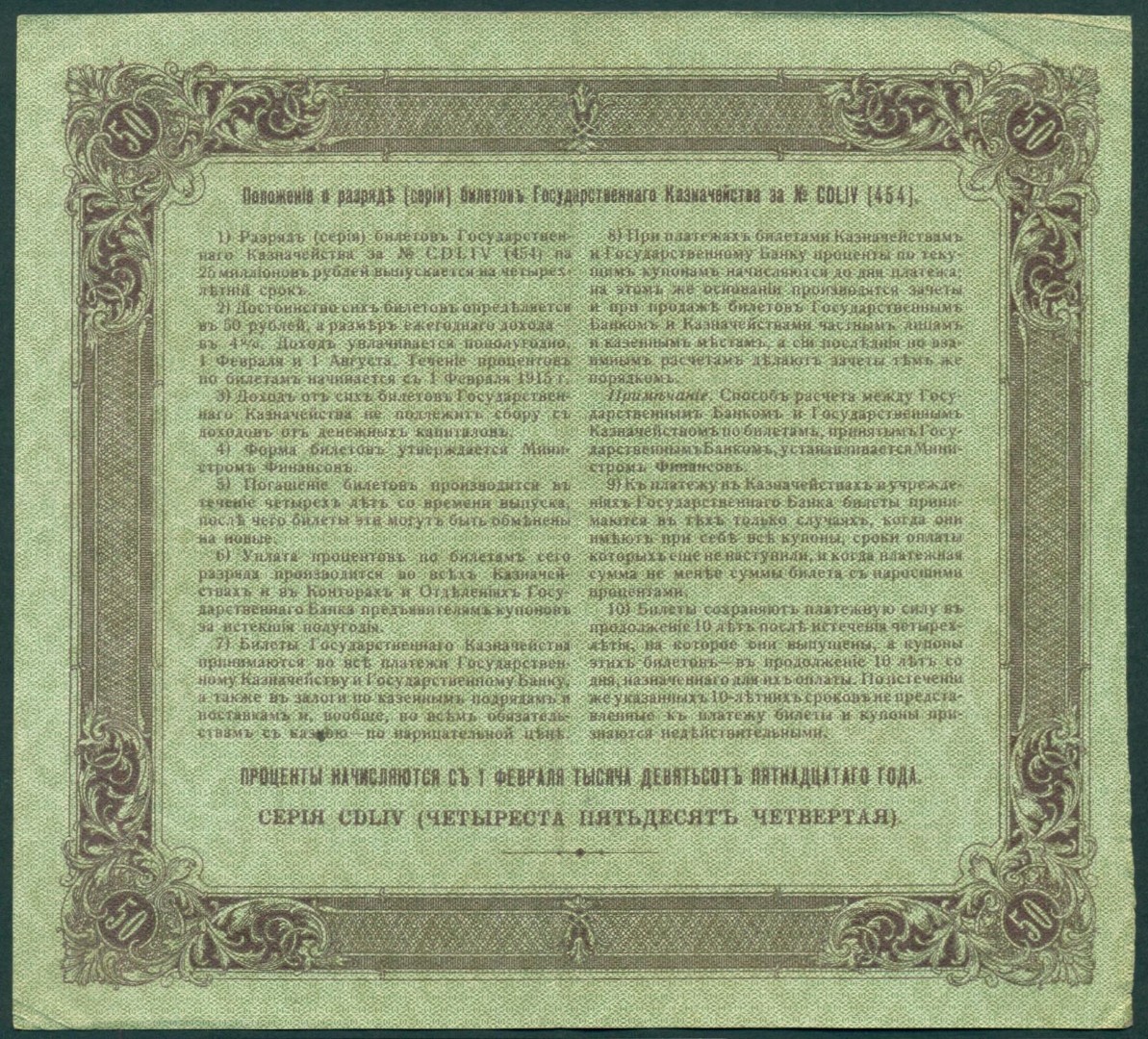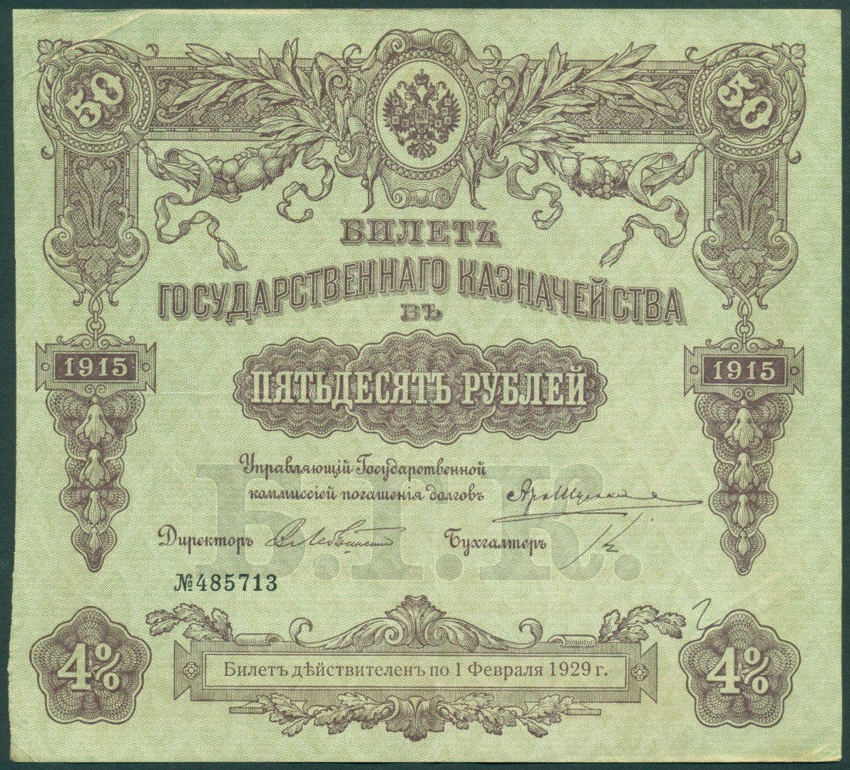 Российская Империя, 50 рублей 1915 год Билет Государственного Казначейства.