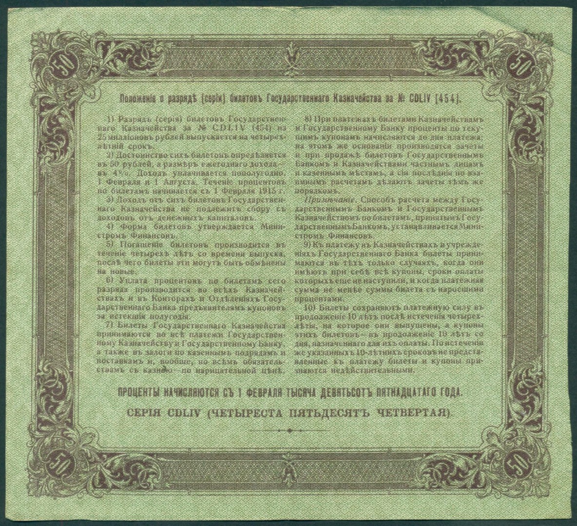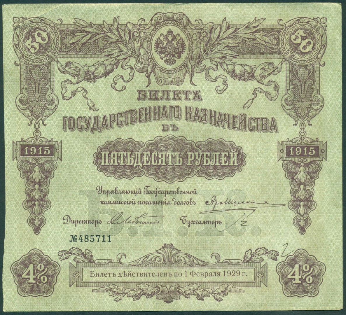 Российская Империя, 50 рублей 1915 год Билет Государственного Казначейства.