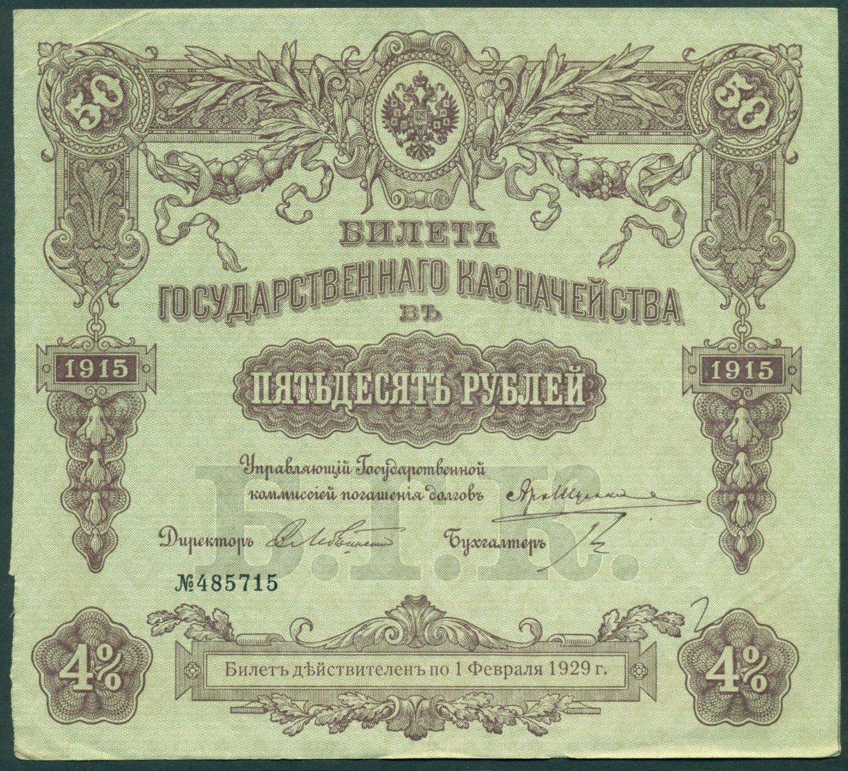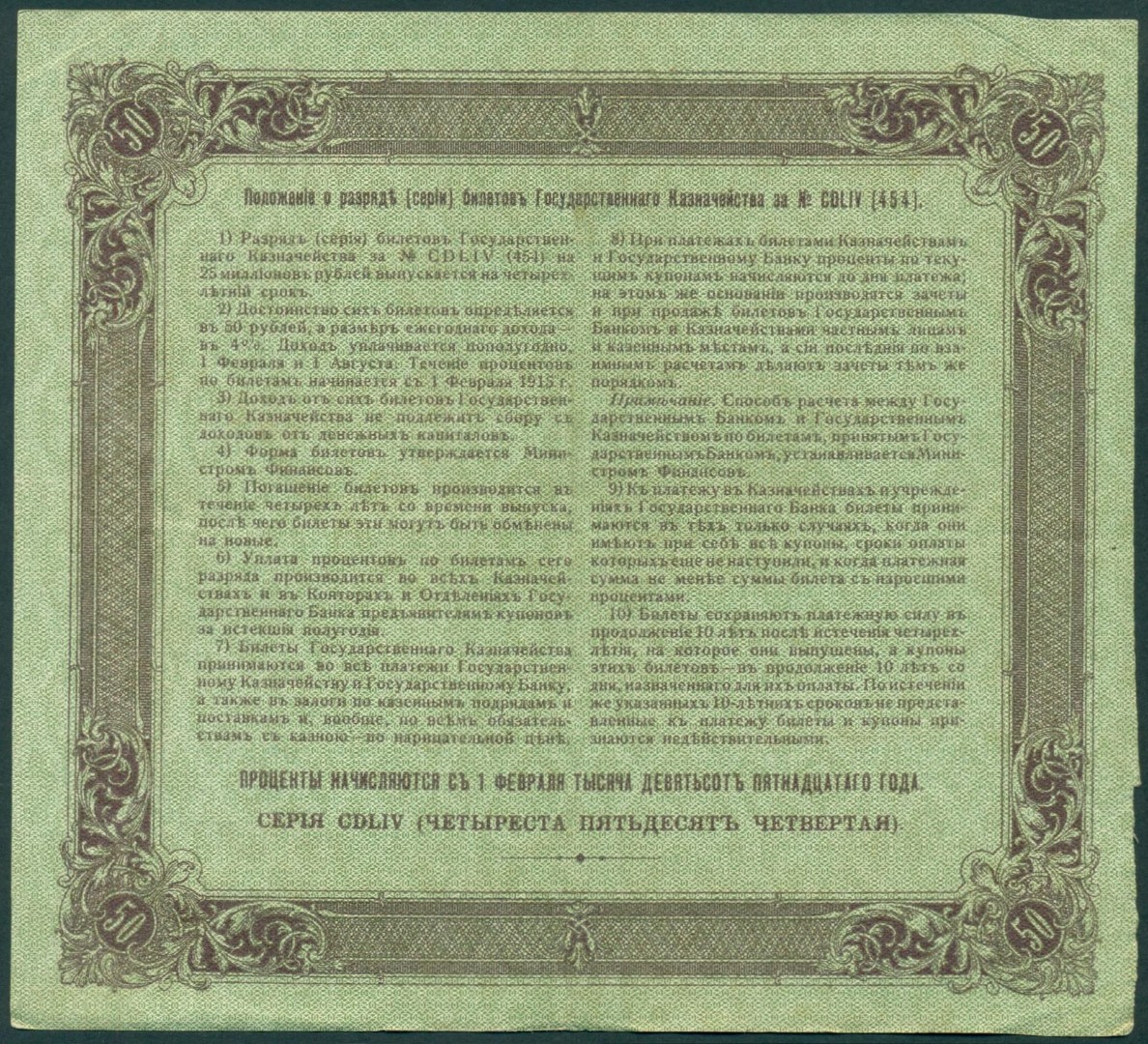Российская Империя, 50 рублей 1915 год Билет Государственного Казначейства.