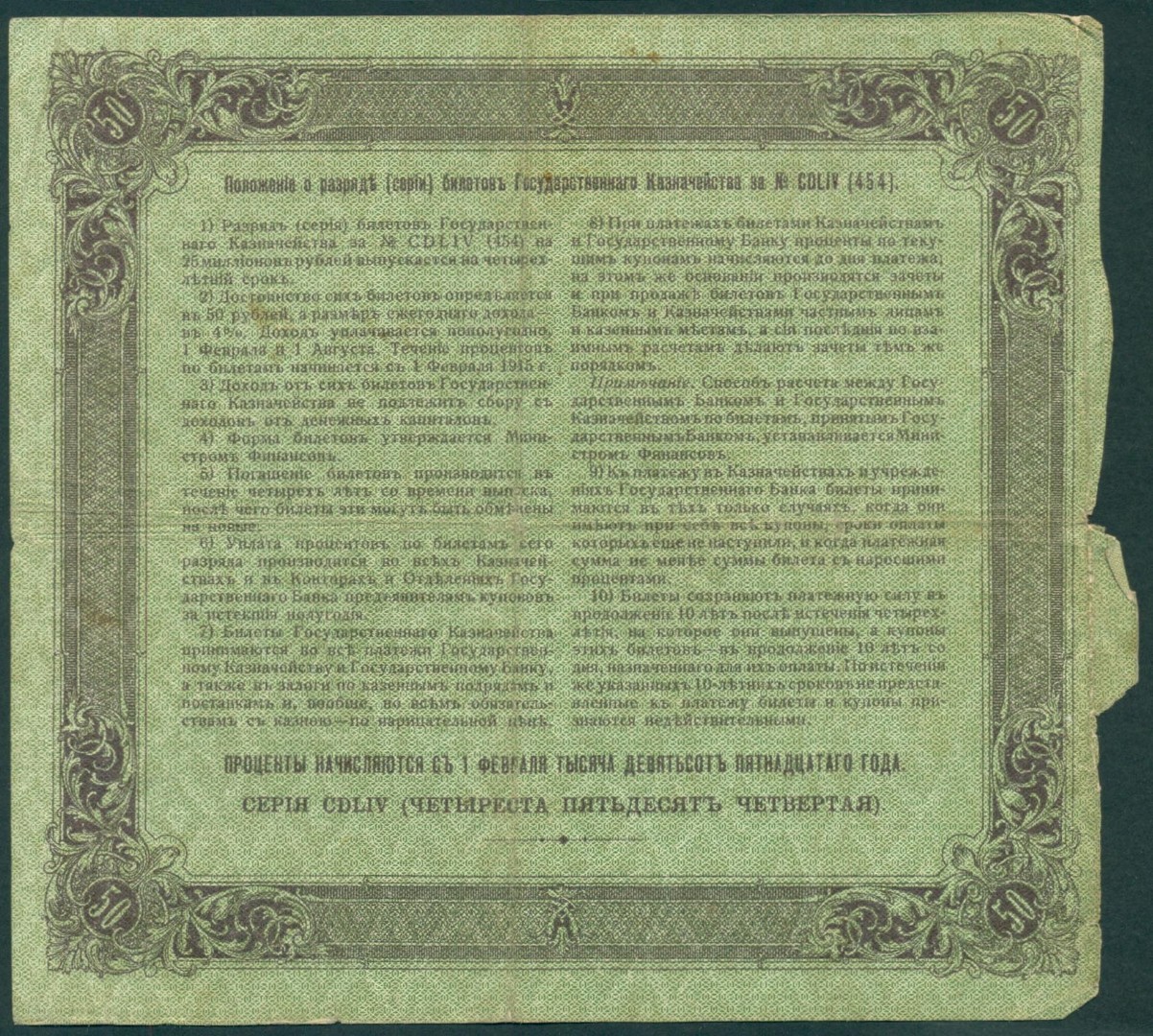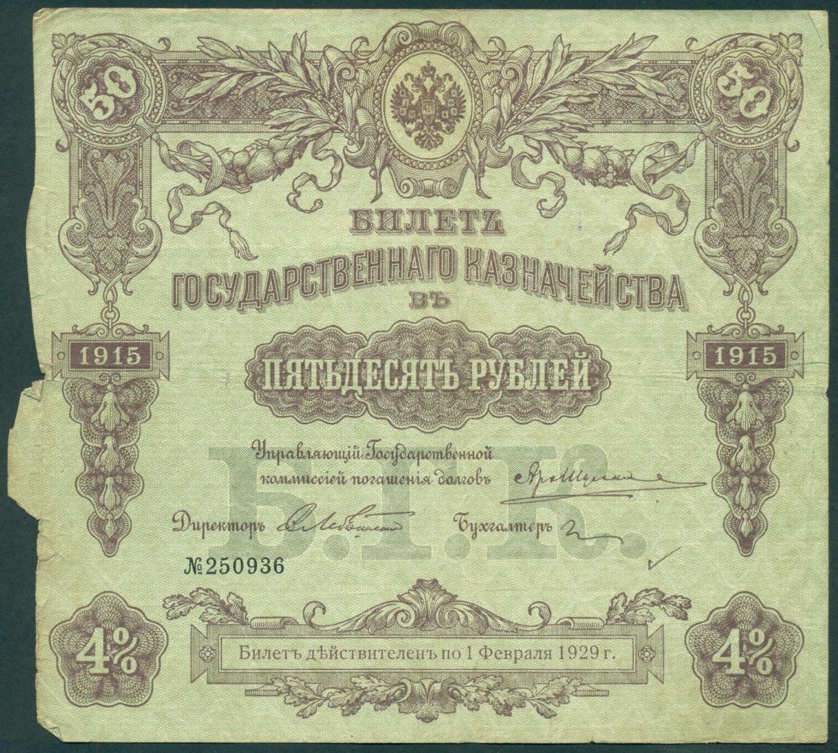 Российская Империя, 50 рублей 1915 год Билет Государственного Казначейства.