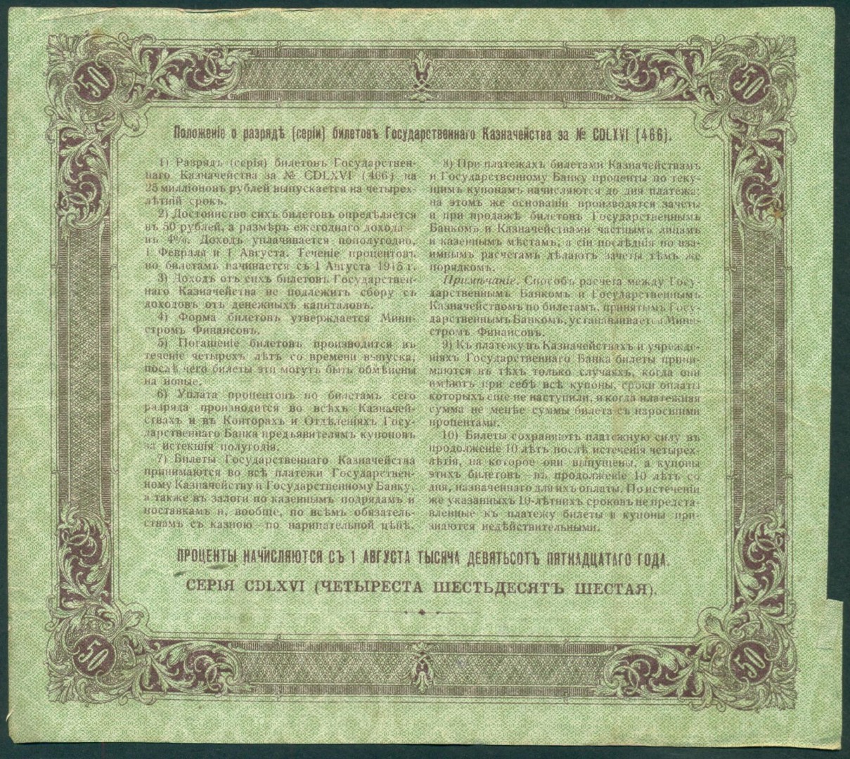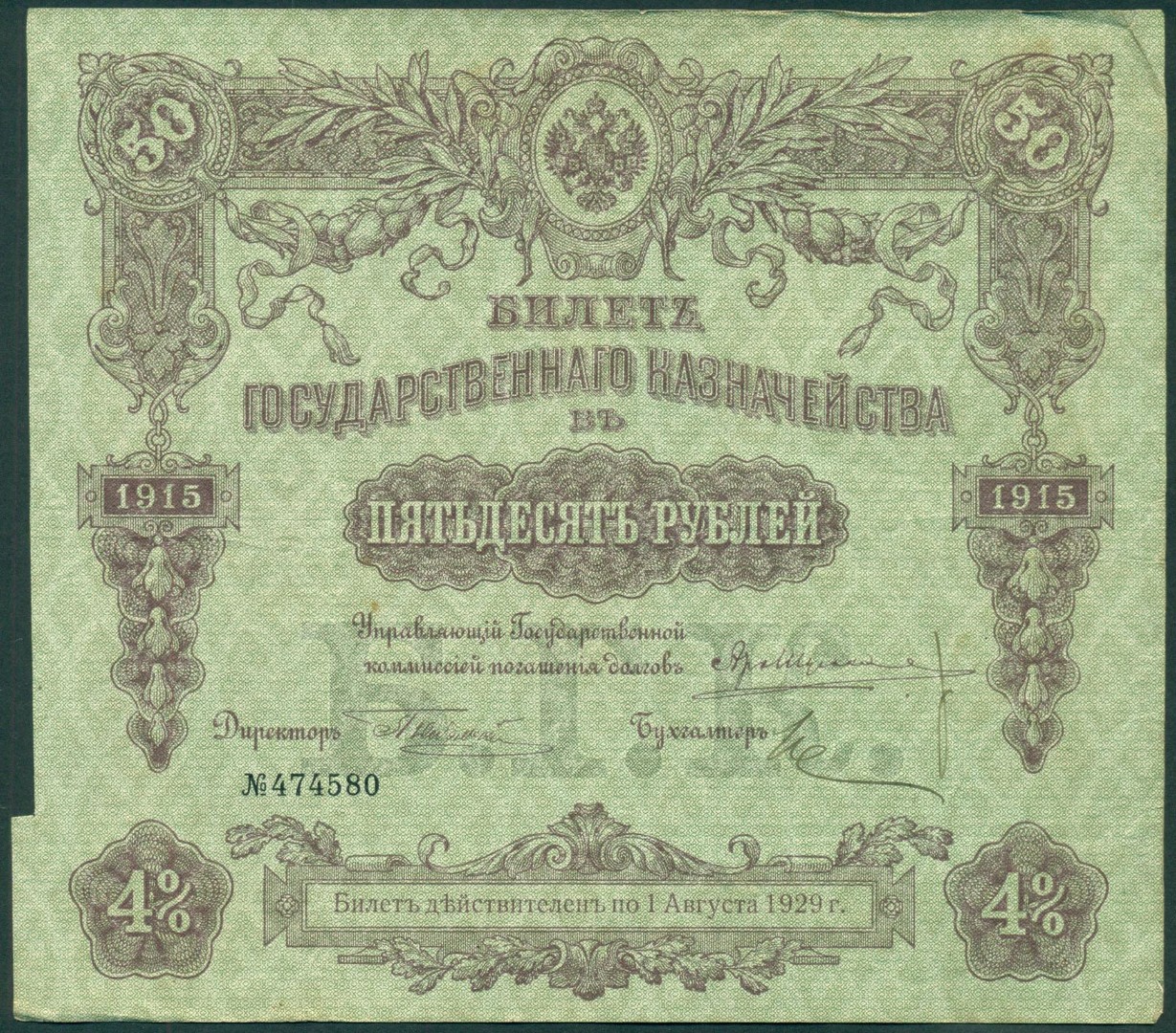 Российская Империя, 50 рублей 1915 год Билет Государственного Казначейства.