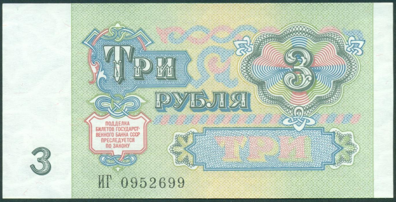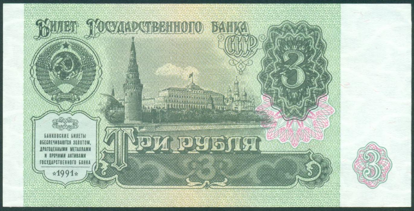 СССР, 3 рубля 1991 год (UNC)