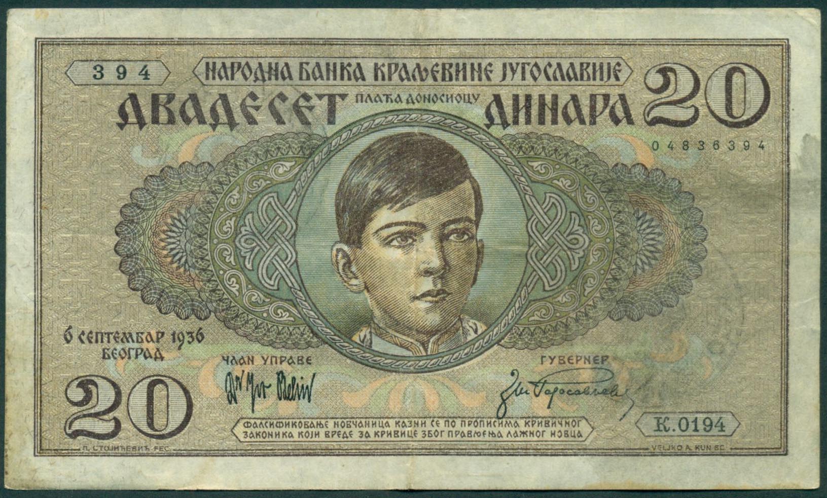 Эмиссионный центр - Народный банк Королевства Югославии.