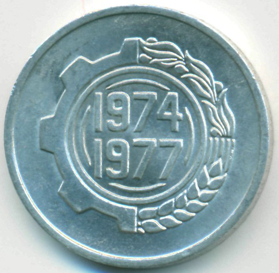 Памятная монета, приуроченная к принятию Второго Четырехлетнего плана развития страны, на 1974 - 1977 годы.