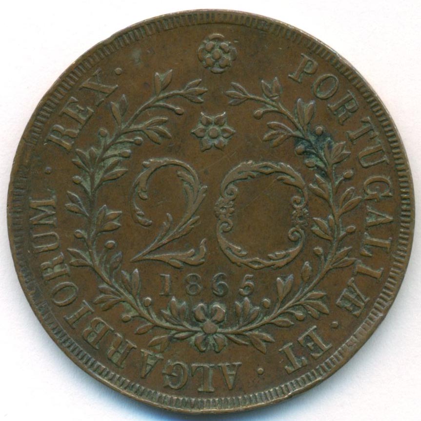 Азорские острова, 20 реалов 1865 год