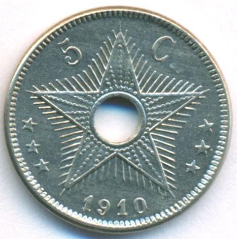 Бельгийское Конго, 5 сантимов 1910 год (AU)