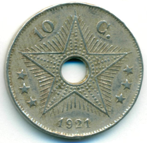 Бельгийское Конго, 10 сантимов 1921 год