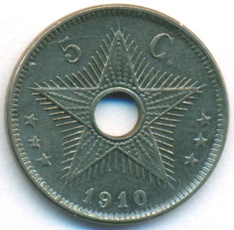 Бельгийское Конго, 5 сантимов 1910 год (AU)