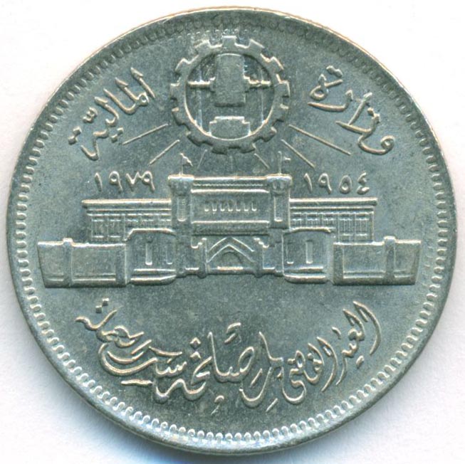 Памятная монета, приуроченная к 25-й годовщине со дня открытия монетного двора в Аббассии (пригород Каира, Египет).