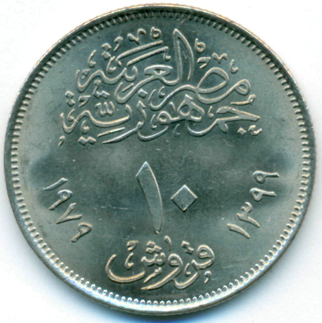 Памятная монета, приуроченная к 25-й годовщине со дня открытия монетного двора в Аббассии (пригород Каира, Египет).