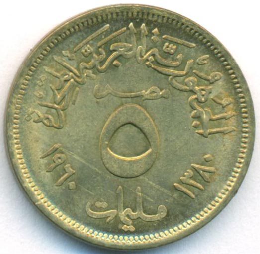 Египет, 5 милльемов 1960 год (AU)