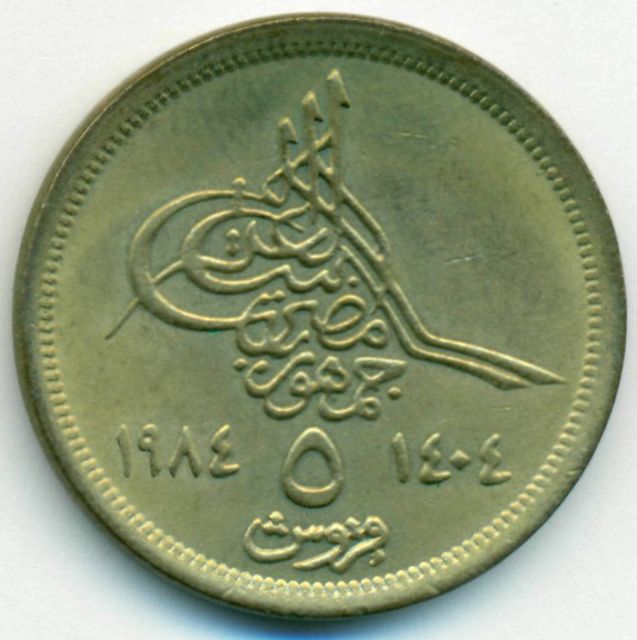 Египет, 5 пиастров 1984 год (UNC)