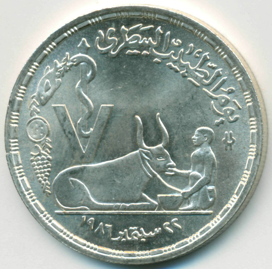 Памятная монета, приуроченная к празднованию Дня Ветеринарного работника в Египте.