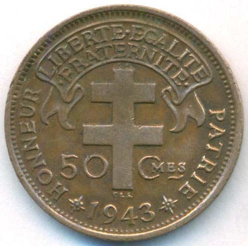 Французская Экваториальная Африка, 50 сантимов 1943 год