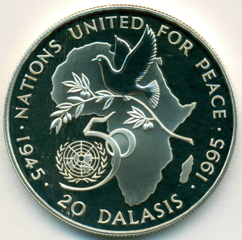 Юбилейная монета, посвященная 50-й годовщине образования Организации Объединенных Наций (ООН).
