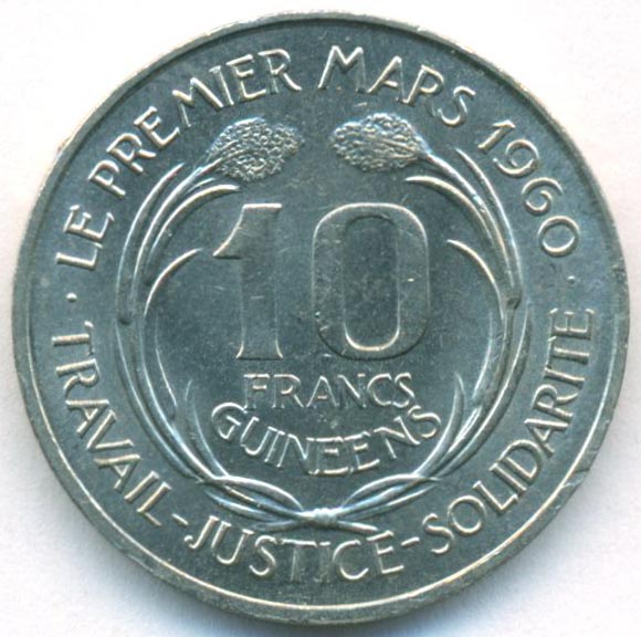 Гвинея, 10 франков 1962 год (UNC)