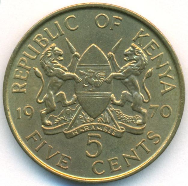 Кения, 5 центов 1970 год (UNC)