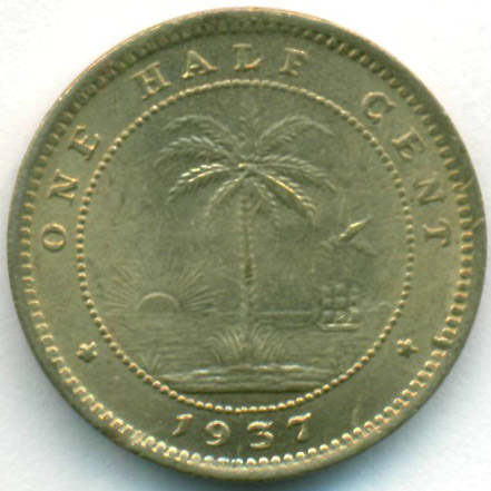 Либерия, 1/2 цента 1937 год (UNC)
