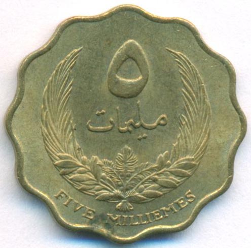 Ливия, 5 милльемов 1965 год (AU)