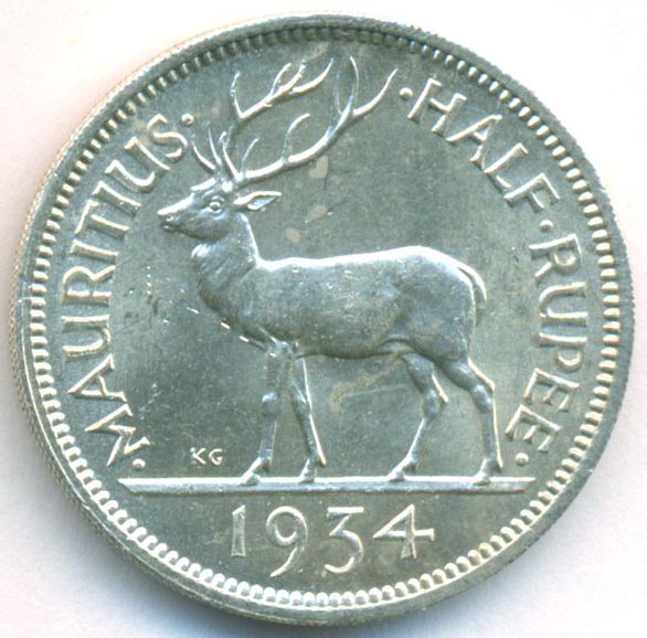 Маврикий, 1/2 рупии 1934 год (UNC)