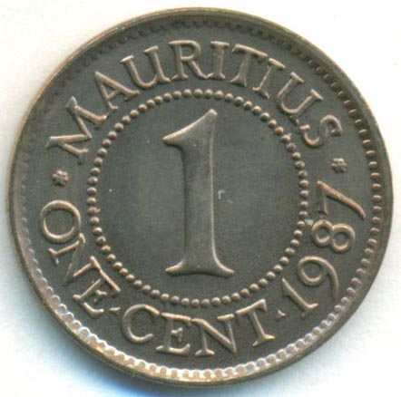 Маврикий, 1 цент 1987 год (UNC)