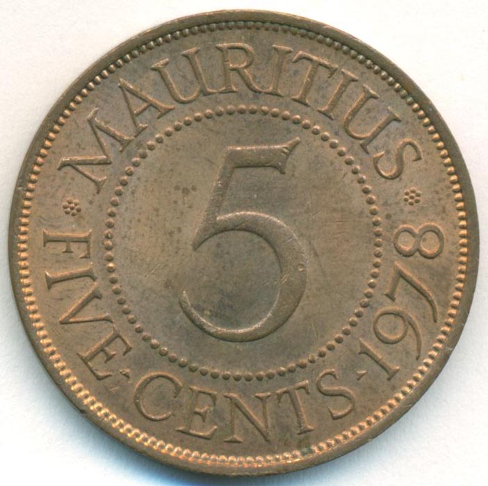 Маврикий, 5 центов 1978 год (UNC)