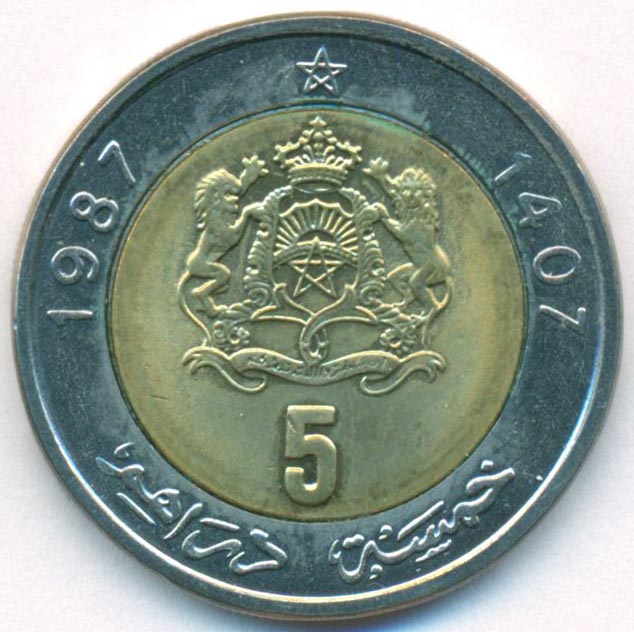 Марокко, 5 дирхамов 1987 год (AU)