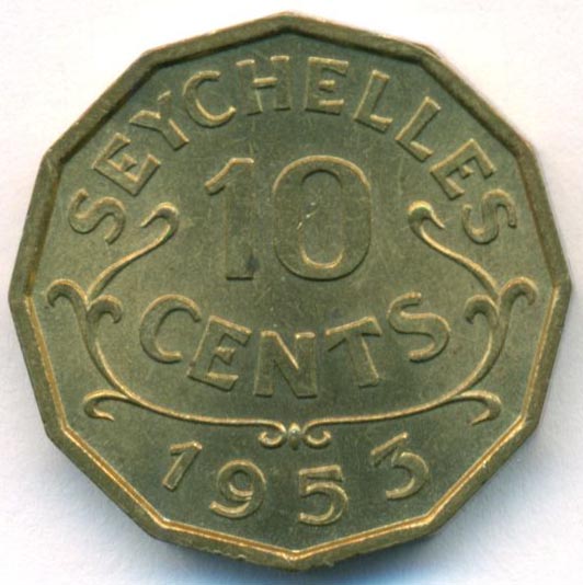 Сейшельские острова, 10 центов 1953 год (UNC)