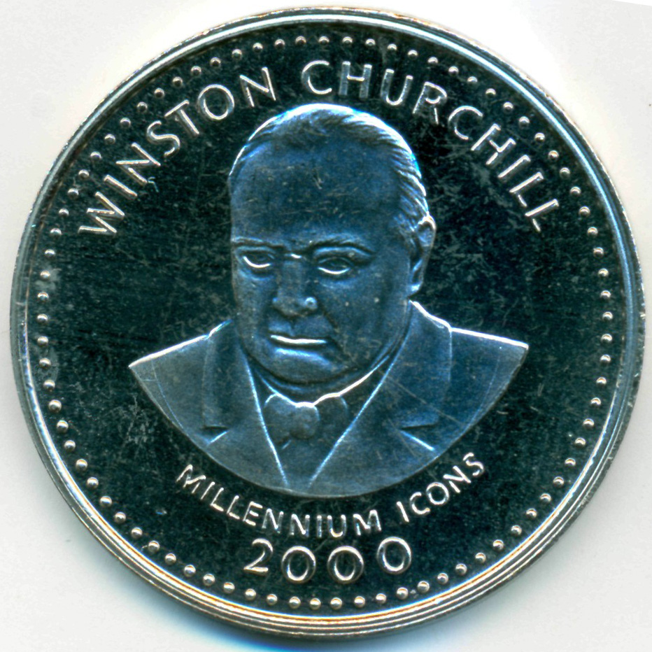 Монета из серии "Лица тысячелетия". Уинстон Черчилль.