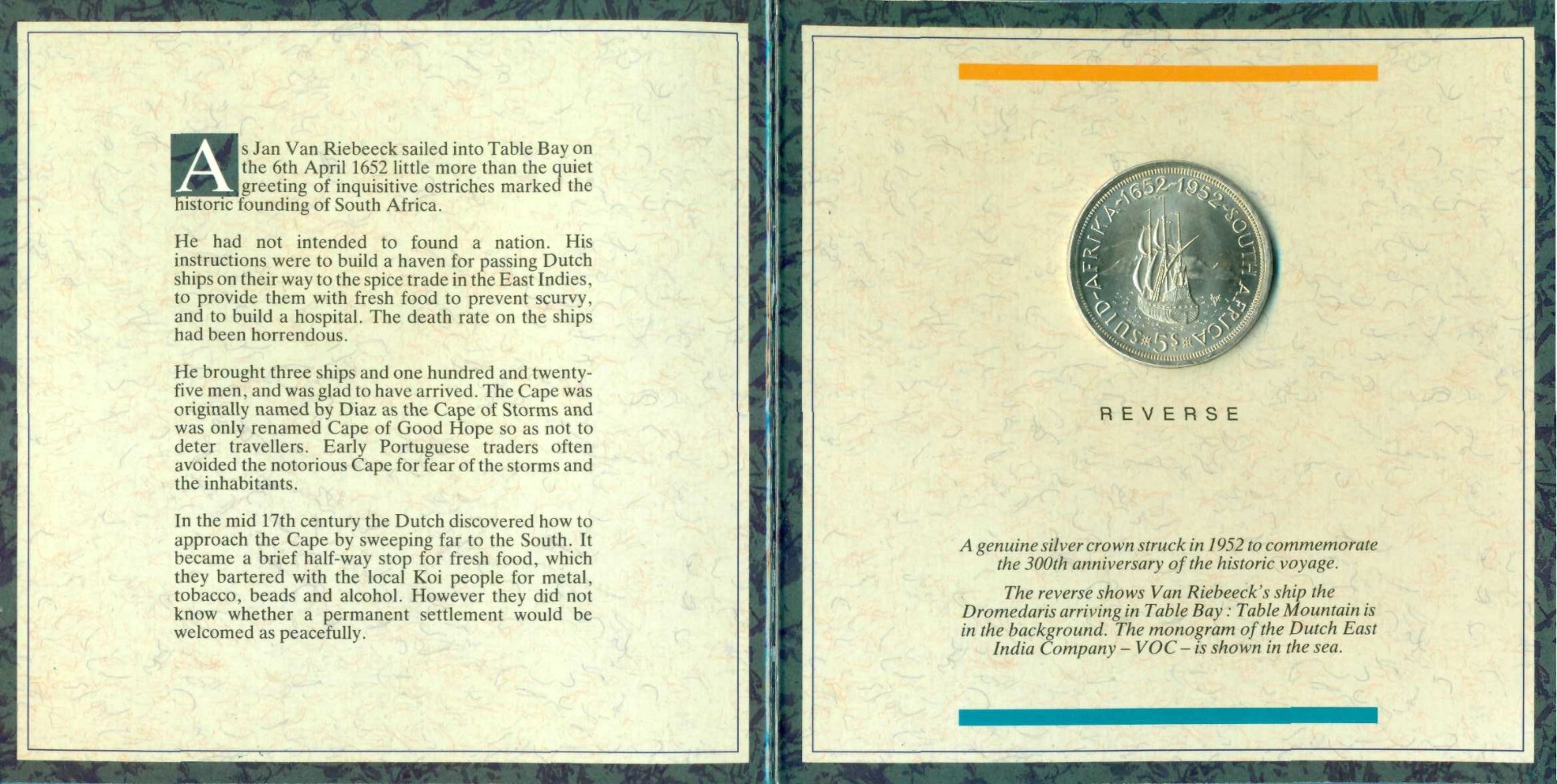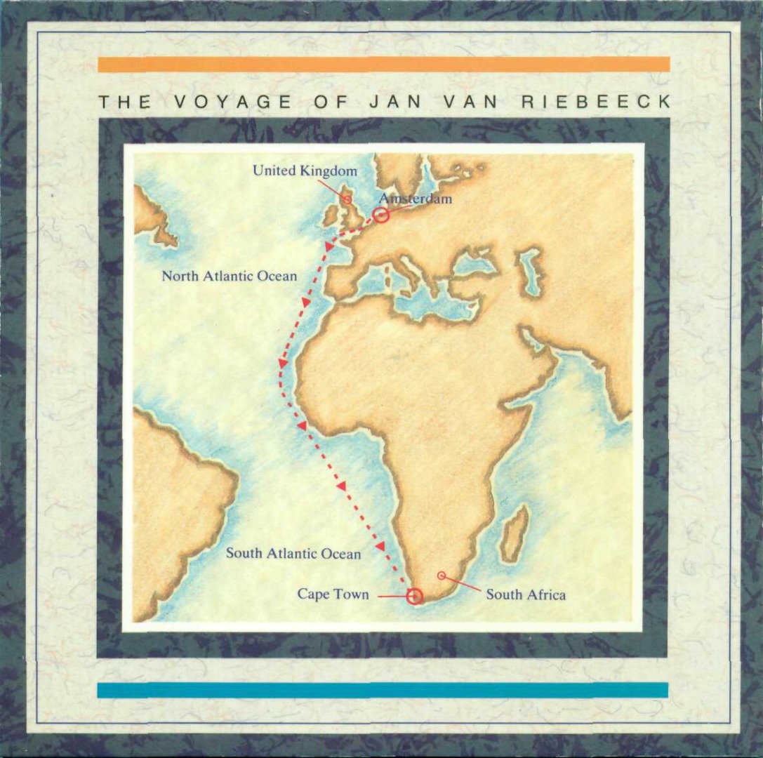Памятная монета, приуроченная к 300-летию основания Кейптауна - города Капской колонии. Корабль "Дромедарис".