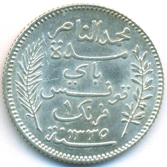 Тунис, 1 франк 1916/1335 год (AU)