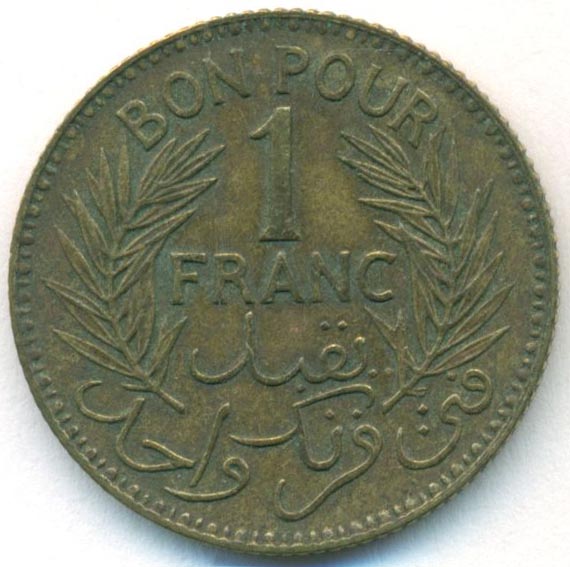 Тунис, 1 франк 1941 год
