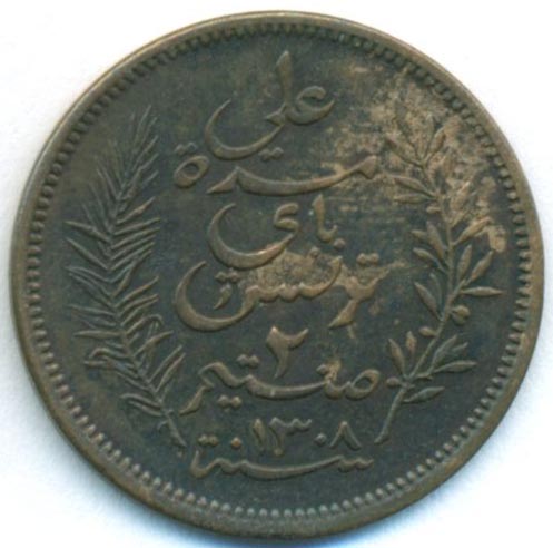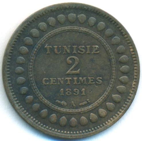 Тунис, 2 сантима 1891 год