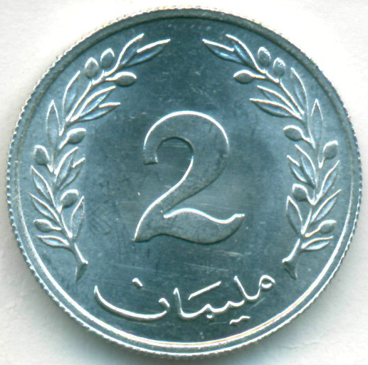 Тунис, 2 миллима 1960 год (AU)