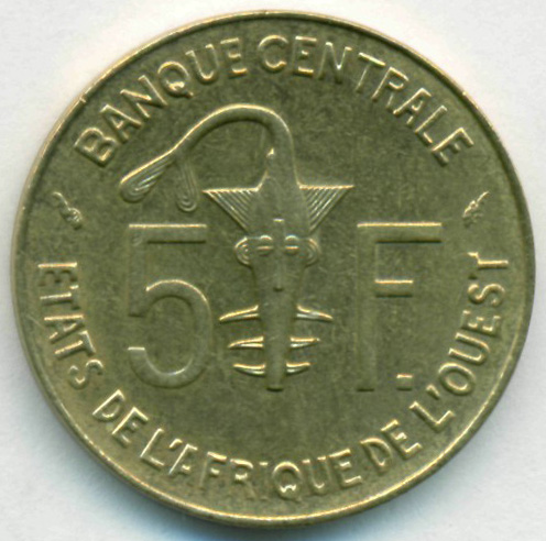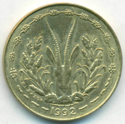 Западно-Африканские Штаты, 5 франков 1992 год (AU)
