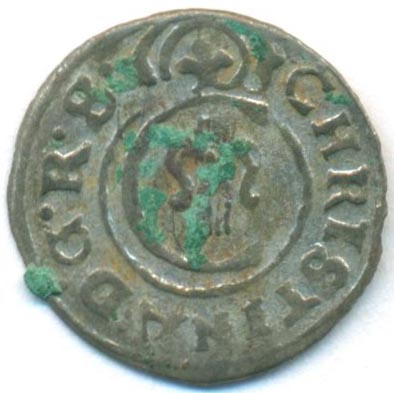 Монета времен правления королевы Швеции Кристины (1632-1654).