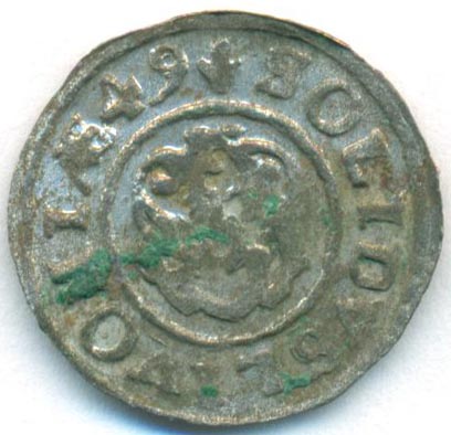 Монета времен правления королевы Швеции Кристины (1632-1654).
