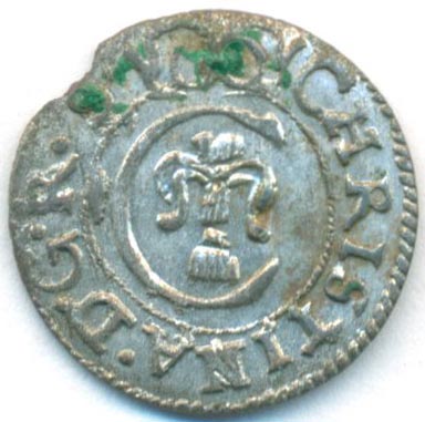 Монета времен правления королевы Швеции Кристины (1632-1654).