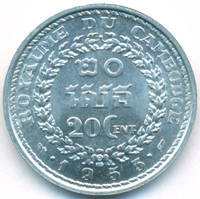 Камбоджа, 20 сантимов 1953 год (UNC)