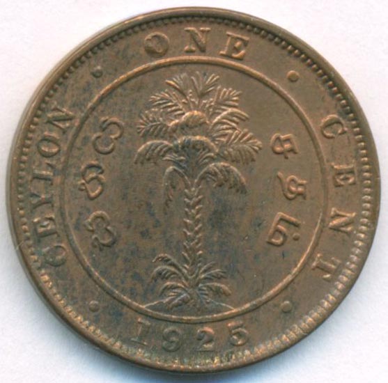 Цейлон, 1 цент 1925 год (AU)