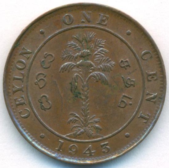 Цейлон, 1 цент 1943 год