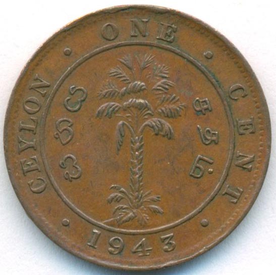 Цейлон, 1 цент 1943 год