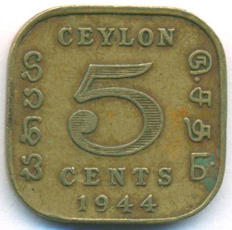 Цейлон, 5 центов 1944 год