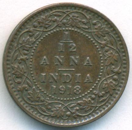 Британская Индия, 1/12 анны 1918 год