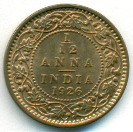 Британская Индия, 1/12 анны 1926 год (UNC)